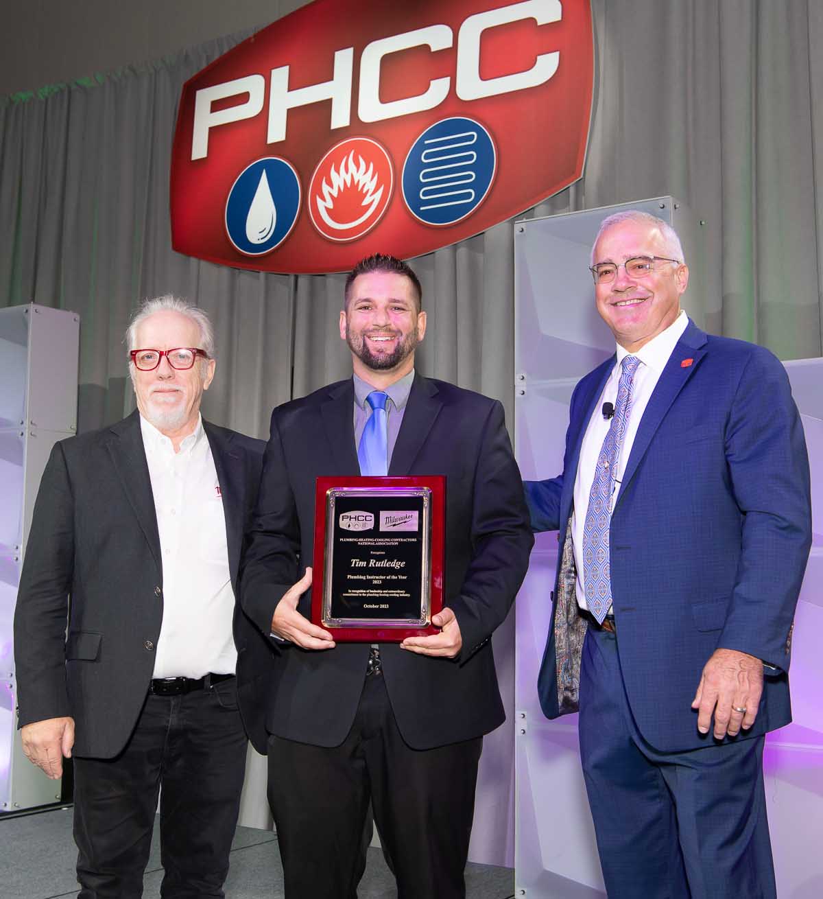Honoring those who have dedicated their careers to enriching the lives of plumbing and HVAC students, the Plumbing-Heating-Cooling Contractors—National Association (PHCC) announced the winners of two awards during PHCCCONNECT2023 which took place recently in Cleveland, Ohio. Tim Rutledge, a deeply committed instructor at the PHCC-GSA Training Facility in Sacramento, California, was named 2023 Plumbing Instructor of the Year, while Brian Millard of the PHCC of Iowa Apprenticeship Program was named 2023 HVAC Instructor of the Year. Both awards were sponsored by PHCC Corporate Partner Milwaukee Tool.