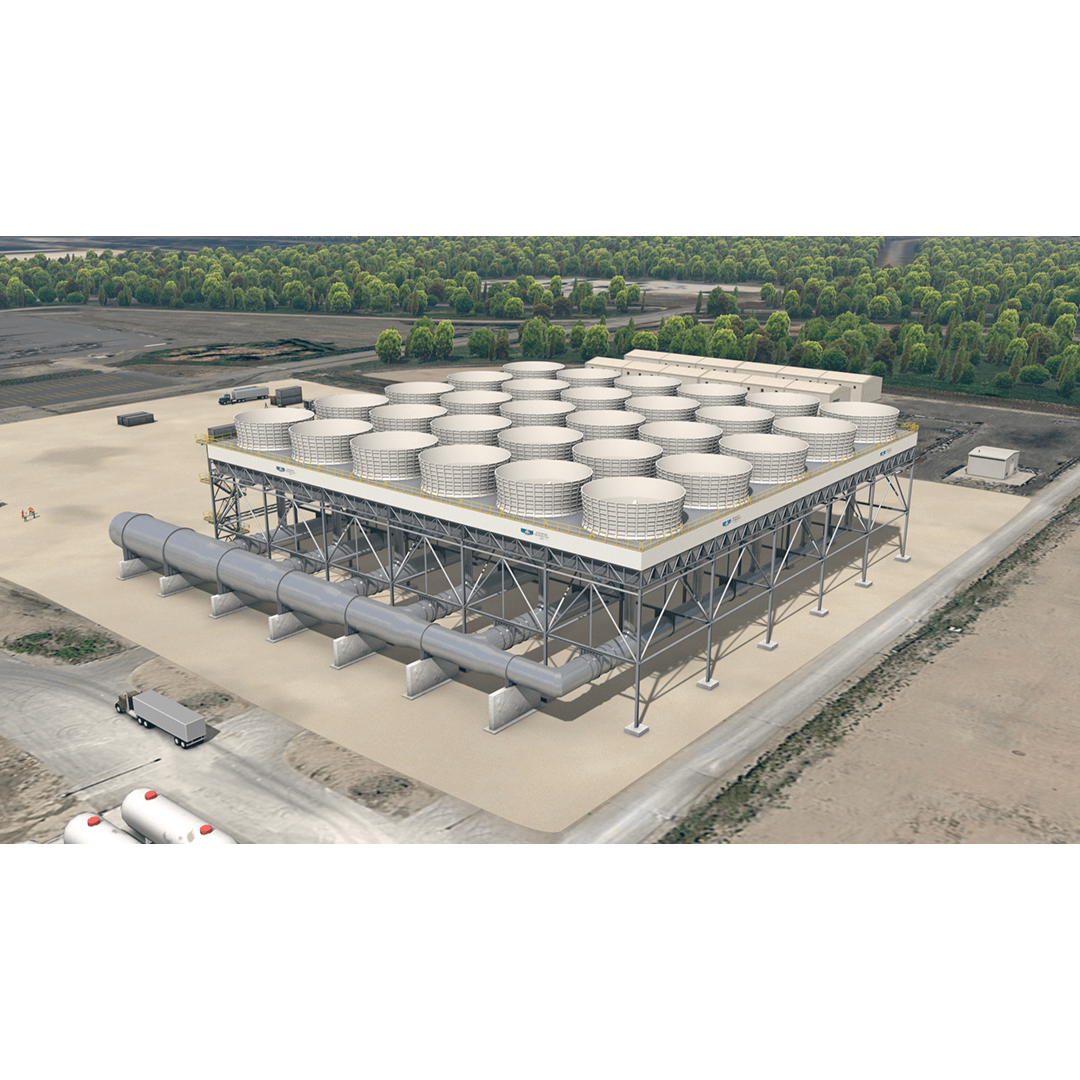 The Advanced Technology ACC combines a new modular construction scheme with the thermal performance of EVAPCO’s patented nuCore Heat Exchanger. The Advanced Technology ACC’s induced-draft design—where the fan is located above the heat exchanger—provides lower overall unit height, reduced potential for recirculation, and less risk of fan vibration caused by high winds. As an integral part of the AT-ACC system, the nuCore heat exchanger is EVAPCO’s response to the ever-demanding air cooled condenser industry, and provides higher heat transfer than conventional designs, meaning that fewer cells are needed to meet a given load. With less equipment installed, maintenance expense is also curtailed. Installation cost is further reduced by minimizing foundation and site work while taking advantage of the modular grade assembled cells and factory installed nuCore Heat Exchanger headers. Individual cells are pre-assembled at grade and hoisted into position, reducing the risk associated with working at elevation and expediting installation work.